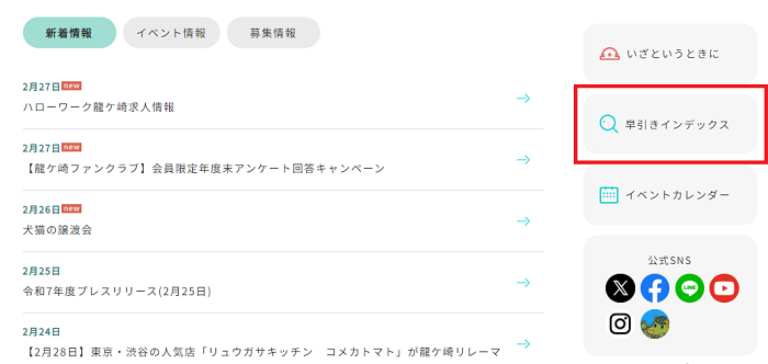 図3 トップページの「早引きインデックス」ボタン