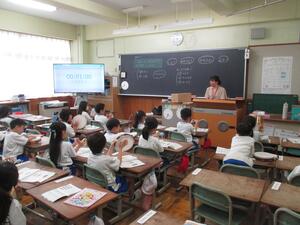 4年生は、9月29日(月)に茨城県の下水道課の方をお招きし、下水道や川・ダムについての出前授業を実施しました。クイズを交えながら、水の大切さや川・ダムの役割などをとても詳しく教えていただきました。これから、社会の学習を通して理解を深めていきたいと思います。