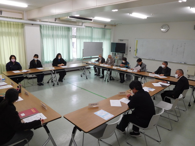 1月28日(水曜日)に学校保健委員会を開催しました。学校保健委員会とは、学校・家庭・地域が連携して生徒の健康課題を話し合い、健康づくりを推進する組織です。本日は教職員の他に学校医2名、学校歯科医2名、学校薬剤師1名、保護者4名の方に参加していただき、有意義なお話を聞かせていただきました。