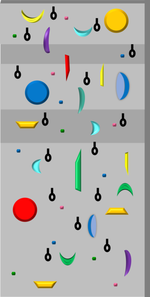 一般的には予選、準決勝、決勝の3ラウンドで行われ、予選では5本、準決勝と決勝では4本のボルダーに制限時間内であれば何度でもトライできます。予選と準決勝は各ボルダー5分間、決勝は各ボルダー4分間で競技が行われます。準決勝には24名、決勝には8名進出できるというのが一般的です。ベルトコンベア方式という形式で行われることが一般的であり、各選手は「競技」と「休憩」を交互に繰り返し、4つの課題ないし5つの課題の競技を行います。選手は競技時間でオブザベーション(登る前に壁を下見し、ホールドの形や位置、体の動き、手順、足順などをシミュレーションして攻略法を組み立てること。)も行う必要があり、他の選手のトライを見ることができません。