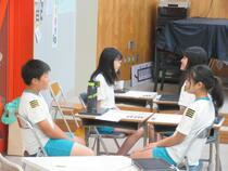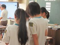 5年生の学級活動では、「いじめ防止スローガンを決めよう」という議題で話合い活動をしていました。子供たちは、「みんな元気だけじゃあだめだよ。」「元気よりもなかよくの方がいいと思います。」など、活発な意見交換をすることができました。