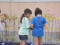 1年生の生活科では、子供たちが育ててきたアサガオのつるをとっていました。この後、つるを使ってリースを作る予定です。
