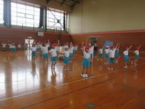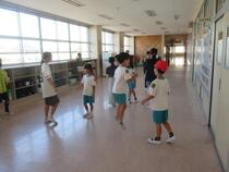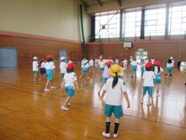 1年生と2年生はスポーツフェスティバルの練習をしていました。子供たちは、音楽にのってとても楽しそうに身体を動かしていて、その姿がとても可愛らしかったです。2年生は集合も整列もとても早く、立派でした。その姿を見て刺激を受けた1年生も、少しずつ行動が早くなってきています。