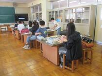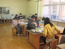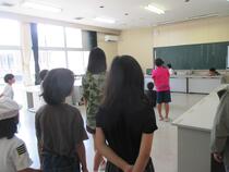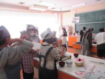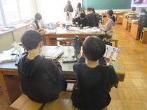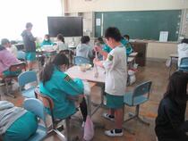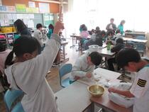 5年生の家庭科では、調理実習を行っていました。子供たちは、お茶をおいしくいれるためにはどうすればよいかを考えながら、学習していました。ガスの点火を初めて体験する子も多く、友達と教え合いながら活動していました。「つかないよ、どうすればいい?」「もう少しゆっくり回すんだよ。」