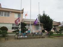 竜巻とJアラート対応のための避難訓練を実施しました。予告なしの訓練絵でしたが、各学級で事前に避難の手順やランドセルで身を守る方法について学習していたため、子供たちは落ち着いて避難することができました。