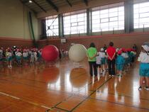 スポーツフェスティバルの全体練習を行いました。今日は大玉おくりの練習です。1回目のチャレンジでは、うまくいかないところがたくさんありましたが、高学年のリーダーの提案などがあり、改善した2回目はどちらのチームも上手にできました。