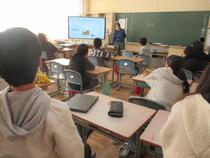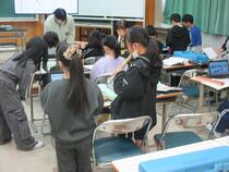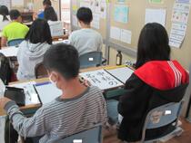 5年生の外国語では、アルファベットの学習をしていました。子供たちは、発音を聞き取ったりノートに書いたりしていました。進んで練習する様子が見られました。すっかり覚えた子もいます。