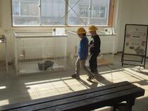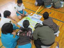 2年生の生活科では、学校探検の練習をしていました。今度、1年生を案内しながら学校探検をするための準備です。「走らないようにしないとだめだよ。」「1年生も走っちゃうよ。」「職員室は、(地図の)どこかな。」「1年生が分かるように印をつけておく?」子供たちは、グループで考えながら練習をしていました。
