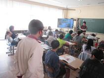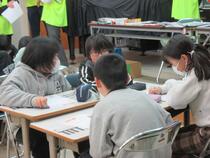 4~6年生では、企業の皆様を講師としてお招きし、防災教室を実施しました。子供たちは、万が一の災害のために備えておくべきものは何かということをグループで話し合いました。「食糧は必要だよ。」「水は絶対必要。」「食糧はきっと自衛隊が運んでくるよ。」など、一生懸命に考える姿が見られました。