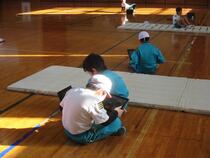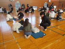 6年生は、流通経済大学の学生さんたちを講師としてお招きし、救急救命講習を実施しました。子供たちは、真剣な表情でAEDの操作方法や心臓マッサージの方法を学んでいました。自分の命も他の人の命も大切にする子供たちを育てていきたいと考えています。