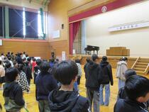 4年生、5年生、6年生は長山中学校で吹奏楽部演奏会を鑑賞しました。子供たちは、吹奏楽部の生徒さんたちが演奏する大好きな映画音楽などを、夢中で聞いていました。知っている曲をたくさん選曲してくれていたので、子供たちは音楽を身体中で楽しんでいた様子が見られました。