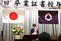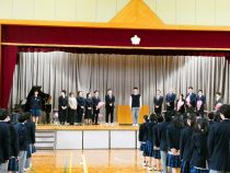 学校長の式辞では、生徒たちのこの1年間の努力を称えるとともに、「自立・共生・貢献の大切さ」や、「目の前のことに全力を尽くして進むことの大切さ」、「努力を積み重ねることの意義」についての話があり、生徒たちは真剣な表情で耳を傾けていました。