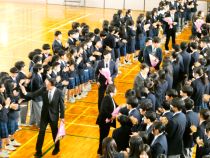 12名の先生方とお別れしました。校長からは、それぞれの先生方の本校での功績を紹介し、一人一人からご挨拶いただきました。生徒が心をこめて、本校の素敵な校歌を歌い先生方も涙ぐんでいました。生徒による花道で先生方をお送りしました。
