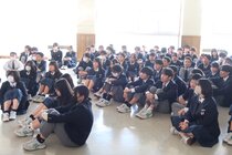 今日は、久しぶりに寒い日でした。3年生は、体育館で卒業証書の受け散り方の練習をしていました。寒い中でしたが、皆、集中して取り組んでいました。1年生は、家庭科の授業で行う「お菓子選手権」に向けての計画を立てていました。決められた材料等の範囲の中で工夫して菓子を作るという学習です。グループに別れて真剣に話し合っていました。その他、1年生の音楽でも心をこめて歌っていたり、2年生の英語ではグループで課題に取り組んでいたりと、皆、元気に一生懸命でした。