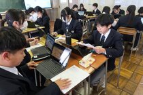 1年生の理科では、年間の学習内容を一通り終え、以前専門家をお呼びして学んだ「火山」について、グループごとに興味をもった日本の火山について調べたことを発表しました。「阿蘇山」や「箱根山」、「雲仙普賢岳」、「吾妻山」など、噴火の歴史や特徴、火山がもらたしている資源などについて、スライドを作成し発表していました。「1年生で、調べたことを的確にスライドにまとめ発表できるのは素晴らしい。これからが楽しみ。期待しています」と、3年の理科担当からお褒めの言葉をいただきました。