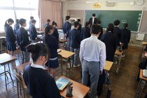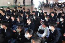 本校では、犠牲となられた方々に対して、哀悼の意を表するとともにご冥福をお祈りするため、地震が発生した午後2時46分に「黙とう」を行い、哀悼の意を表しました。