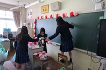 1年生が、卒業式に向けての3年生教室の装飾準備をしていました。先輩の心に残る卒業式にしようと、一生懸命な姿に感動しました。