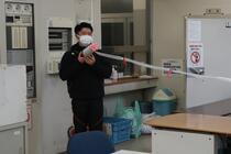 昨日の生徒下校後の放課後、体育を担当する若手教員2名が教材を作成していました。保健分野「喫煙の害と健康」の指導を行うにあたり、自作の大型たばこ模型を作り、副流煙がどのぐらい広がるのかを実感できるように工夫をしていました。