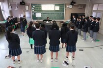 音楽家の三枝成彰氏による作曲の本校校歌の音源を8年ぶりに更新しました。今回は、合唱を愛した「令和7年度卒業生の合唱とビアノ演奏」のものを使用しました。卒業記念用に録音した音源を、制作を依頼した(株)フロンティアヴォイス様にご提供いただきました。