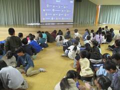 3年生は川原代小の子供たちとの交流会を行いました。はじめに、それぞれの学校で行ったスーパーマーケット見学について発表し、その後は、グループごとにKahoot!というソフトを使ってクイズをつくり、解答の早さや正確さを競って楽しみました。次の時間には体育館に移動し、体育館いっぱい使ってレクリエーションを楽しみました。
