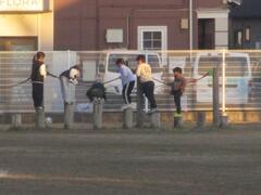 龍ケ崎市防災安全課のご協力で、馴柴小防災訓練を実施しました。1・2年生は、煙体験と消防車・パトカー展示の見学、3・4年生は、水消化器での消火訓練と展示見学、5・6年生は、避難所設営訓練と防災倉庫や給水車、マンホールトイレの見学をそれぞれ交代で行いました。