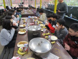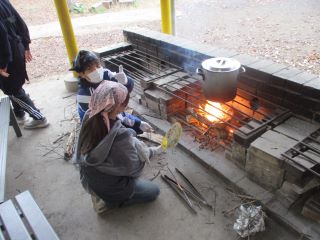 5年生の宿泊学習がさしま少年自然の家で1泊2日で行われました。1日目は入所式を終えた後、初めての「焼き板づくり」です。糊で字を書き、バーナーであぶると文字の部分が焼けないため、作品が仕上がります。昼食の後の活動は「ビンゴオリエンテーリング」です。所内に隠れている番号とカタカナの書かれたプレートをグループで協力して探し、ビンゴを完成させます。2時間のという長時間でしたが、あきらめることなく一生懸命取り組む姿が印象的でした。1日目の最後を締めくくるのは「キャンプファイアー」です。火の神によってできた炎を囲んで踊ったり歌ったりしました。今回の宿泊学習も同じ中学校区の久保台小学校と同じ日に行われました。朝のつどいでは、レクリレーションを一緒に楽しみ、グループで自己紹介や昨日楽しかった出来事を伝え合いました。2日間で2回の交流があったので、お互いの名前を覚えた児童もいました。2日目のメイン活動は「カレーライス」作りです。所員の方から説明を受けた後、薪を集めて火をつける児童、材料を切って調理する児童、それぞれが役割をしっかりとやり遂げたおかげですべての班でおいしいカレーライスができあがりました。児童達は初めての活動が多く、大変だったと思いますが、すべての行程が時間よりも早く進み、担任と児童みんなで拍手をして称え合う場面が何度もありました。学びの多い2日間となりました。