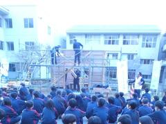 第一学年では、木造倉庫引き渡し式が執り行われました。式の進行は生徒が行いました。立派な態度で式に臨むことができました。