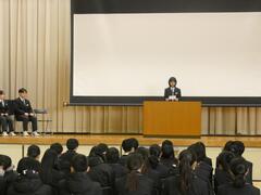 冬季休業前の全校集会が開かれました。明日から始まる冬休みを有意義なものにするため、真剣な態度で話を聞く生徒の姿が見られました。