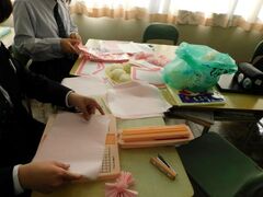 写真は3年生を送る会の装飾を作る様子です。3月に行われる3年生を送る会に向けて、係を中心に少しずつ進行や飾りつけの準備を進めています。