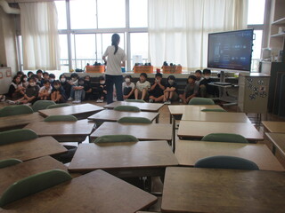 朝にオンラインで集会を開き、新しい保健室の先生の紹介、各学年の代表児童の目標発表、校長先生の話がありました。集会の後は各学級で活動があり、担任の先生と学習しました。大変暑い1日となり、屋外での活動はできませんでしたが、子供たちは久しぶりに会う友達と楽しそうに過ごしていました。