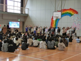 5年生が中心となり準備をしてくれました。1年生から4年生までの、各学年児童による合唱や、5年生のクイズなど、どれも心が温まるものばかりでした。