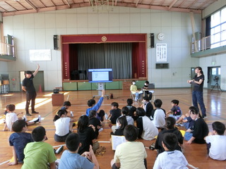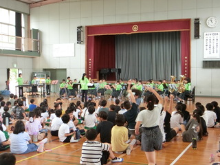 西小には3時間目に演奏をしてくれました。子供たちはとても楽しそうに演奏を聞いていました。