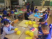 1年生が、来年入学してくる新入生のためにさまざまな準備を進めています。今日は、入学式の日の教室を飾るために、紙のお花を作ったり画用紙に絵を描いたりしました。お花はグループごとに色を決めて、赤、白、青、黄、緑などいろいろな色の花を作りました。また画用紙には、新入生に早く学校に慣れてもうために小学校での生活の様子を描きました。1年生から次の1年生へ……。良い伝統が引き継がれていると感じました。