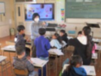 今日の3年生の音楽は、合奏でした。それぞれが「木でできた楽器」「皮をはった楽器」「金属でできた楽器」など様々な楽器を持ち、その音を組み合わせていきます。楽器ごとの音の出し方を確認した後は、先生が示すリズムや音の強弱に併せて、実際に楽器を演奏しました。皆、楽しそうに音を出していましたが、音が合うまでには、もう少し時間がかかりそうです。それぞれの楽器が組み合わさったときに、どんな音になるのか楽しみですね。