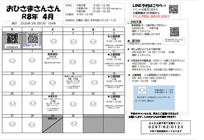 - LINE予約「龍ケ崎市役所公式LINE」→基本メニュー「申請・予約」→施設予約「さんさん館」から申し込み