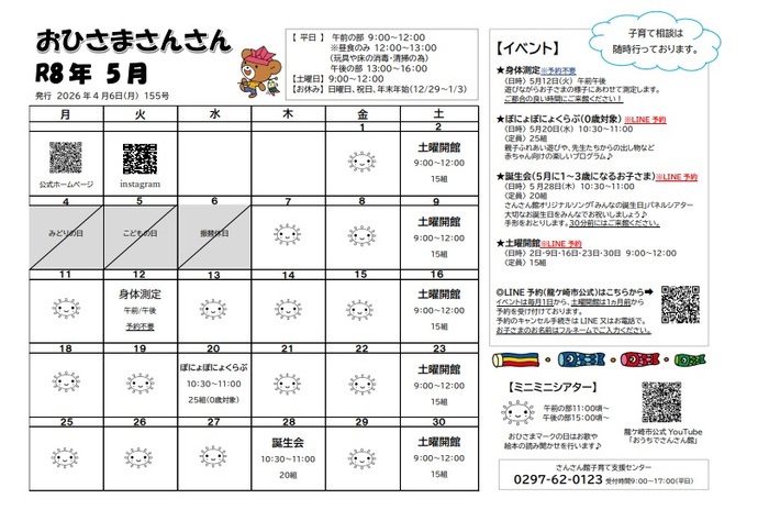 「みんなで子育て!」をモットーに、来館してくださる方が楽しい子育てが出来るよう、そして皆さんの交流の場となるよう、様々なイベントを計画したり個別相談にも応じております。