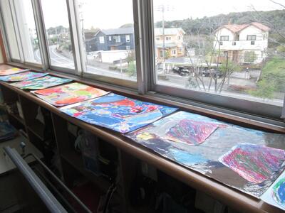 芸術祭に向けて絵を描いています。1年生は、自分たちで育てたアサガオを題材にし、アサガオと自分たちが遊んでいる絵を制作中です。マーメイド紙に大きく思いを込めて描いています。完成が楽しみですね。