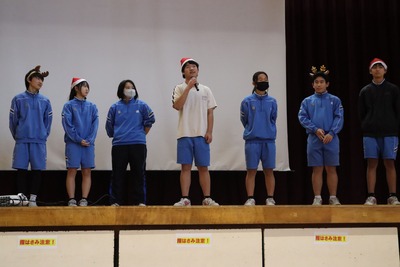 12月22日(月曜日)5校時に生徒会本部役員主催の全校レクリエーションが行われました。ビンゴ、クイズ大会、コレオグラフィーを行いました。コレオグラフィーは学級ごとに人文字で1文字を作り、「JOSAI LOVE」をつくりました。
