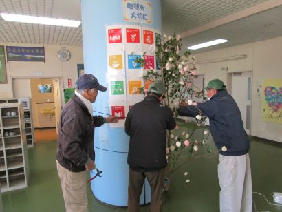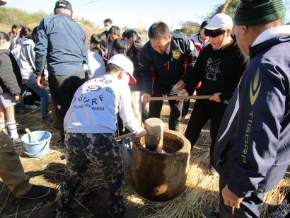 地域おたすけ隊の皆様が、完成したならせ餅の設置までしていただきました。
