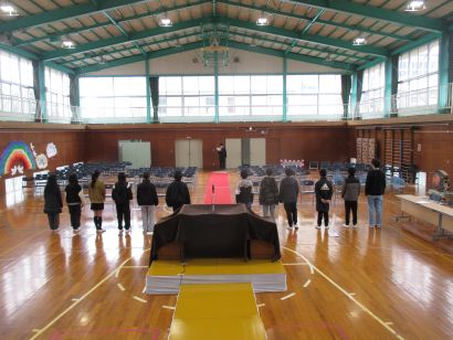 体育館の会場準備は4.5年生が中心に進めています。