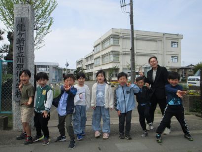 1年生 集合写真 給食前に下校です。元気いっぱいです。