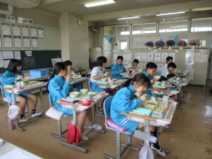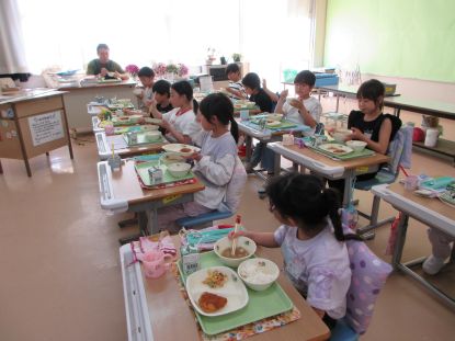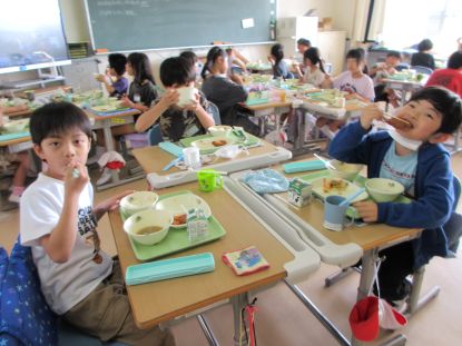 2年生 給食の時間 「おいし~!」