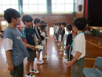 6年生による歓迎の言葉 言葉の内容や態度を校長先生から褒められました。