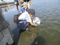 当日は、バケツに入れたうなぎを子供たちが優しく牛久沼に放流しました。