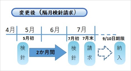 その際は、上下水道料金につきましても、1カ月分の請求から2カ月分の請求に変更となります。