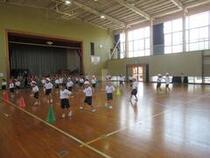 1、2年生の体育では、スポーツ大会で行う「玉入れ」と「表現」の練習をしました。