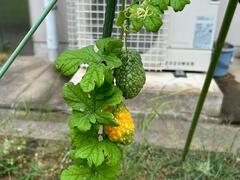 4年生が種から育てていたゴーヤが、小さい実をつけました。