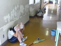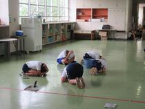 それぞれの掃除場所で、静かに、姿勢を低くし、頭を守っていました。