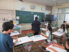 5年生は外国語の授業で「身近な人を紹介する」学習をしました。今日はキット先生にスライドを見せながら先生の紹介を行いました。ジェスチャーやアイコンタクトに気を付け、堂々と紹介することができました。外国語の学習を頑張っています。