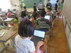 今日の3時間目に5年生が、タブレットで長山小学校とmeetを行い、来月の宿泊学習についての話し合いをしました。
